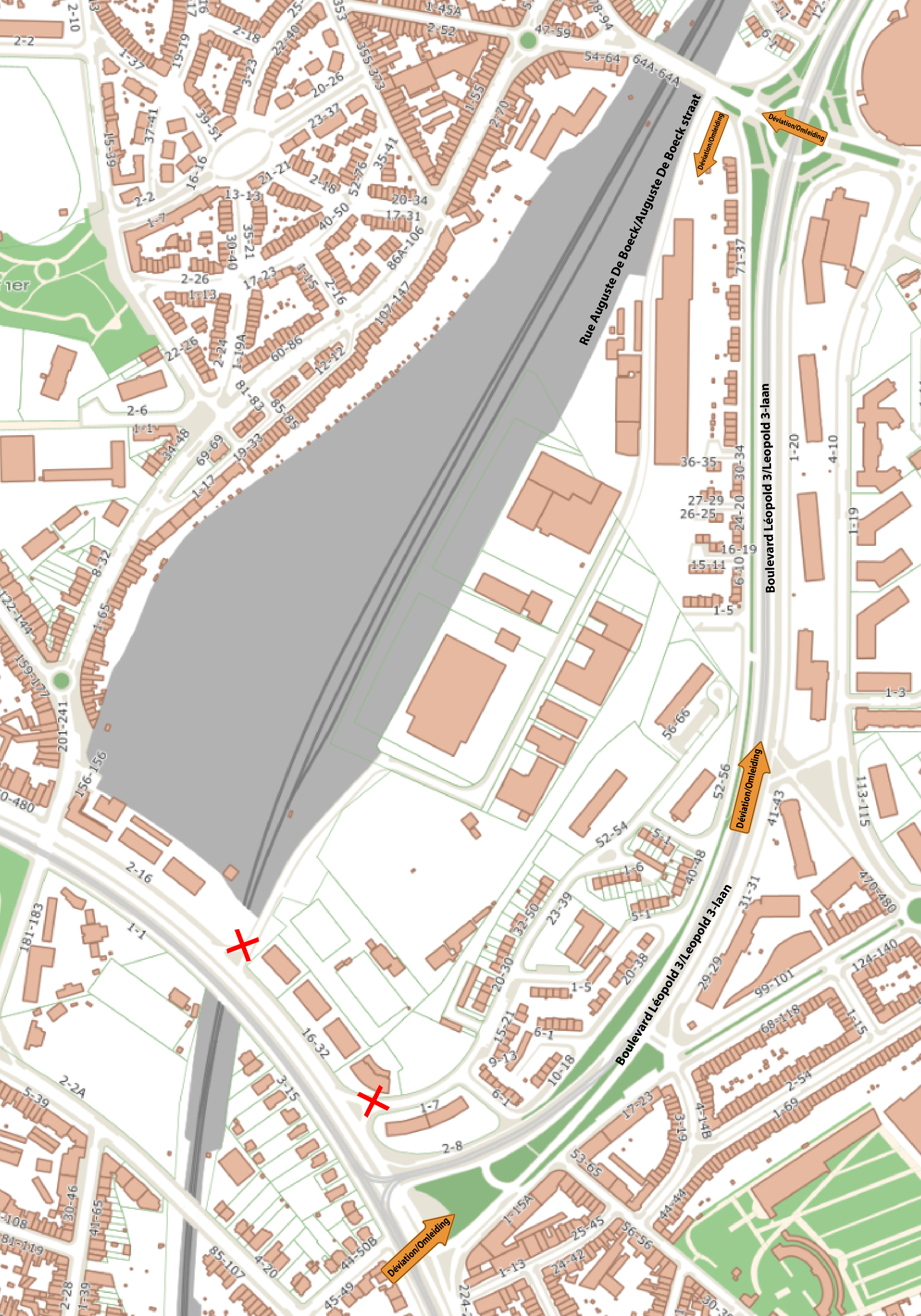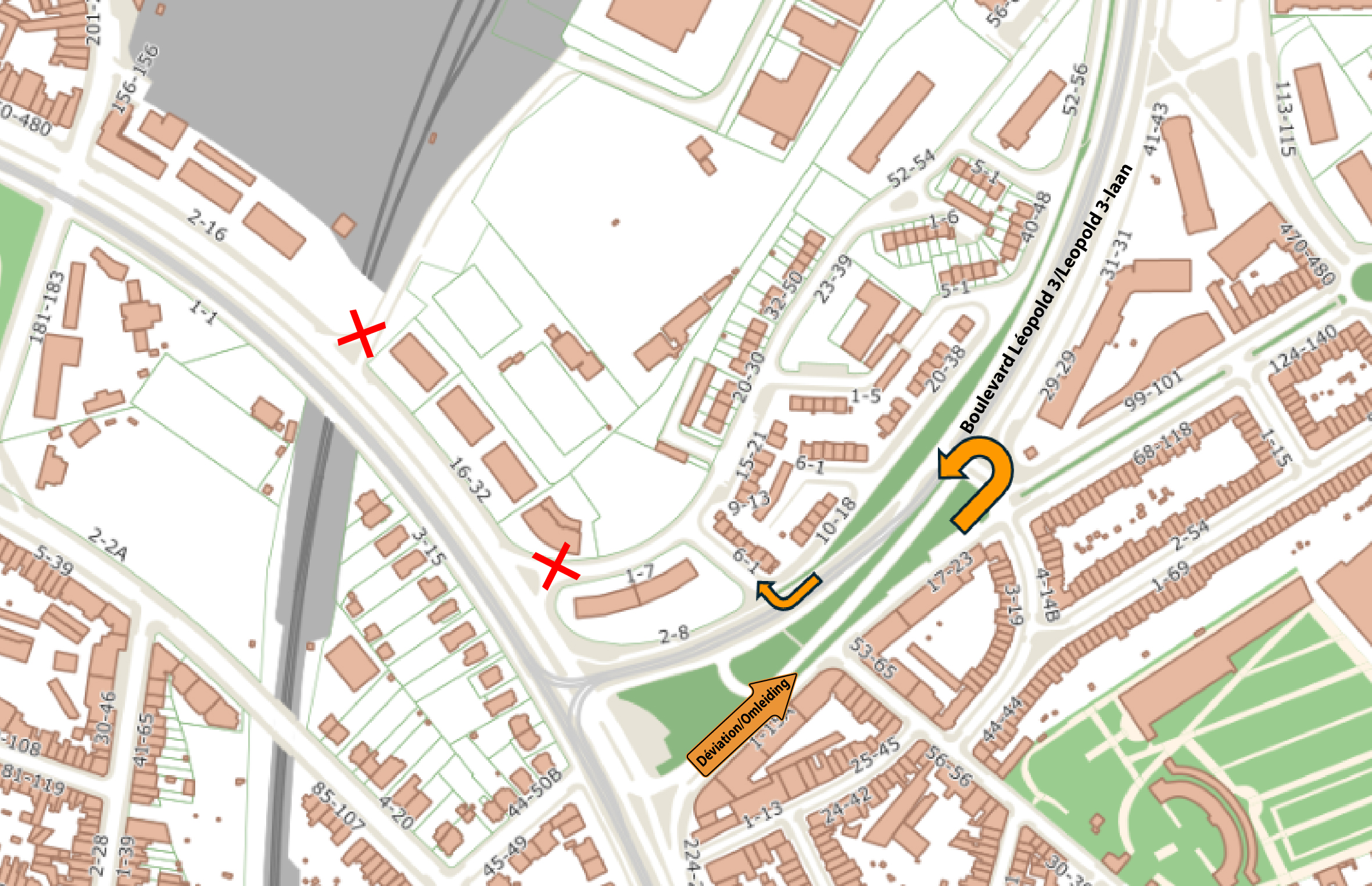 Une déviation sera mise en place via l’avenue Leopold III à l’ avenue de la Jeunesse. La sortie avenue des Jardins vers le boulevard Lambermont restera toutefois accessible. (voir plan)
