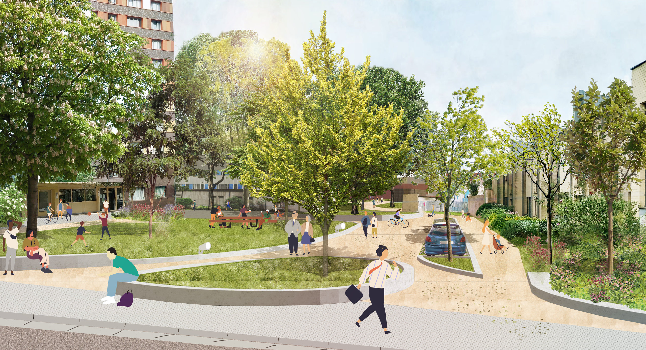 Aanleg van een nieuw park binnen huizenblok Albert in Anderlecht
