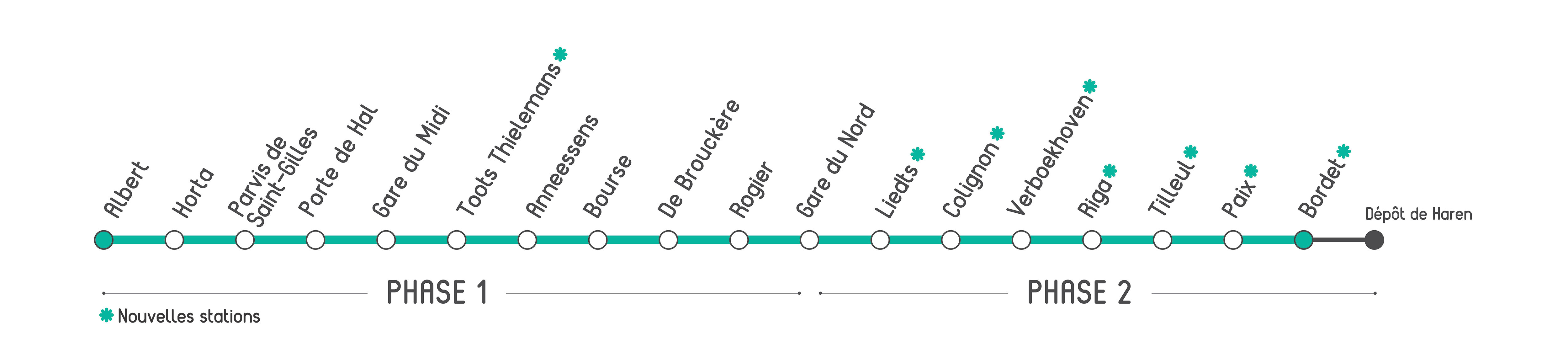 La seconde phase concerne, quant à elle, l’extension de ce tronçon jusque Bordet par la création d’un tunnel de 4,5 km, de 7 nouvelles stations modernes et d’un dépôt.